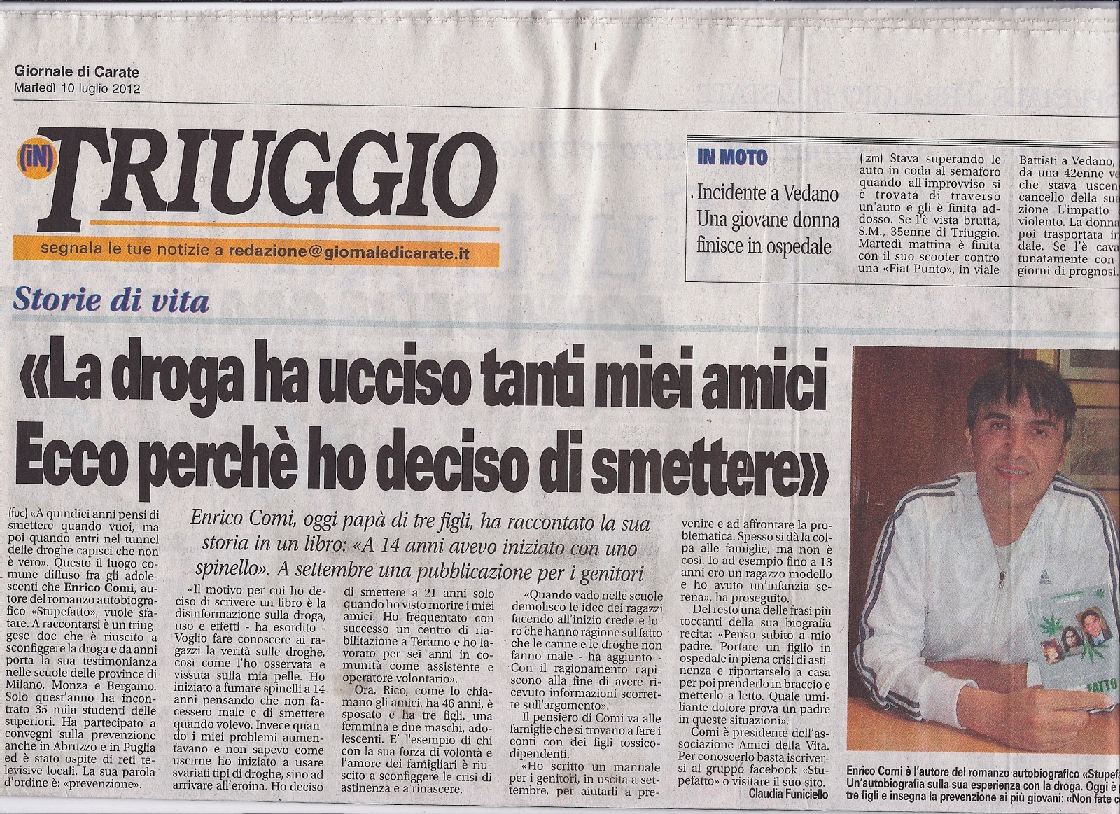 Questa è una delle diverse mail che ricevo. Si chiama Giorgio ed è un grande. Uno di quelli che le cose le capiscono senza doverle provare. Dico spesso: "non è necessario schiantarsi conto un palo con l'auto per capire che ci si fa male".
